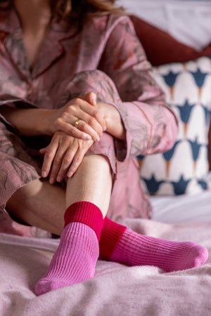 Experience the unparalleled comfort of our signature cashmere bed socks, a hallmark of our craftsmanship.
