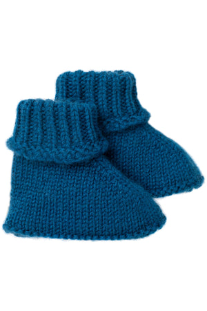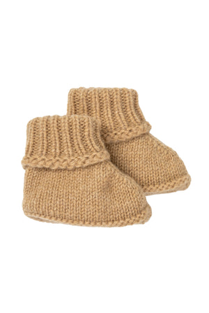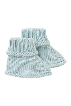These bootees are available in two sizes: 0–3 months and 6–12 months. The smaller size measures approximately 5 × 9cm, while the larger size is 7 × 11cm. As with all of our baby pieces, sizing is a guide—each pair has natural stretch and give thanks to the softness of the knit.