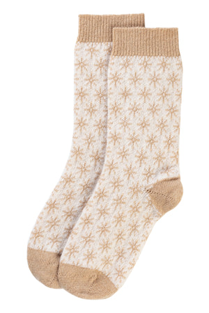 Argyle Pattern Cashmere Bed Socks, Caramel